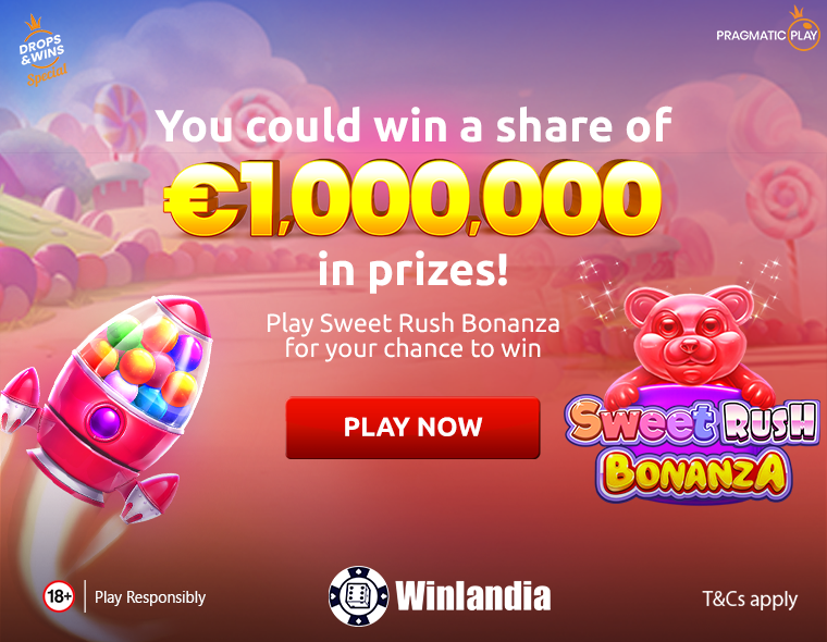 Runs 30/09 – 05/10. €1,000,000 prize pool awarded in free spins and bet multipliers. Play Sweet Rush Bonanza to enter. Bonus Policy Applies.